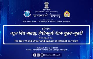 A workshop on “The New World Order and impact of Internet on youth’ was jointly organised by Akashvani Dibrugarh and IQAC & Career Counselling Cell, M.D.K.G. Collage on 18/03/2025 at colloge premises.