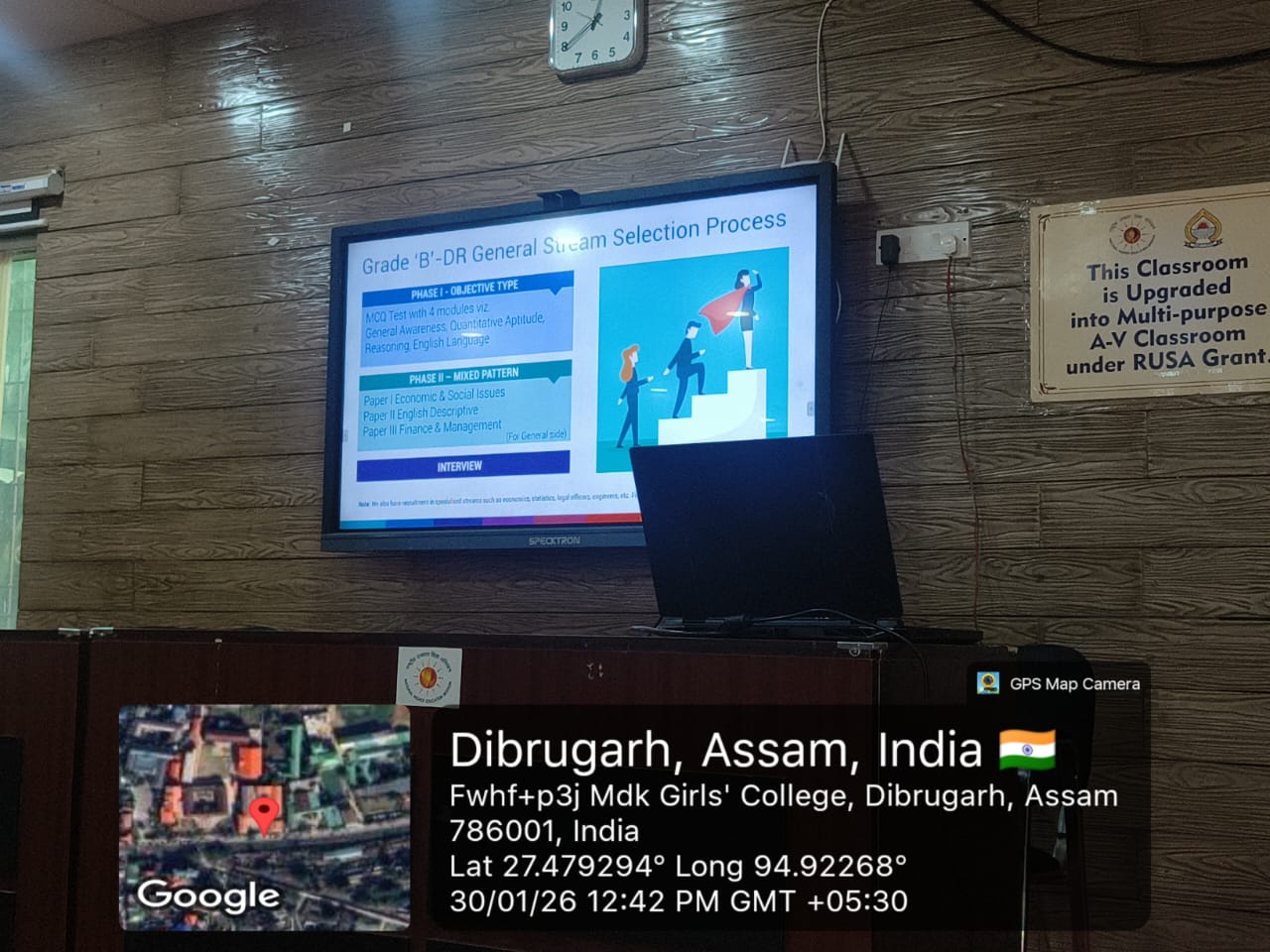The Career Counselling and Placement Cell (CCP Cell) of MDKG College on 30th January, 2026 organised an Awareness campaign on Career Prospects in the Reserve Bank of India in collaboration with the Reserve Bank of India, Guwahati. The programme was conducted with the objective of creating awareness among students about career opportunities, recruitment procedures, and professional growth in the RBI.