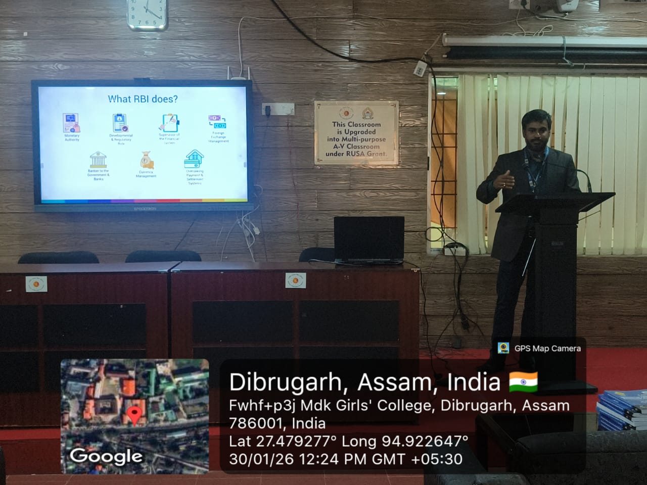 The Career Counselling and Placement Cell (CCP Cell) of MDKG College on 30th January, 2026 organised an Awareness campaign on Career Prospects in the Reserve Bank of India in collaboration with the Reserve Bank of India, Guwahati. The programme was conducted with the objective of creating awareness among students about career opportunities, recruitment procedures, and professional growth in the RBI.