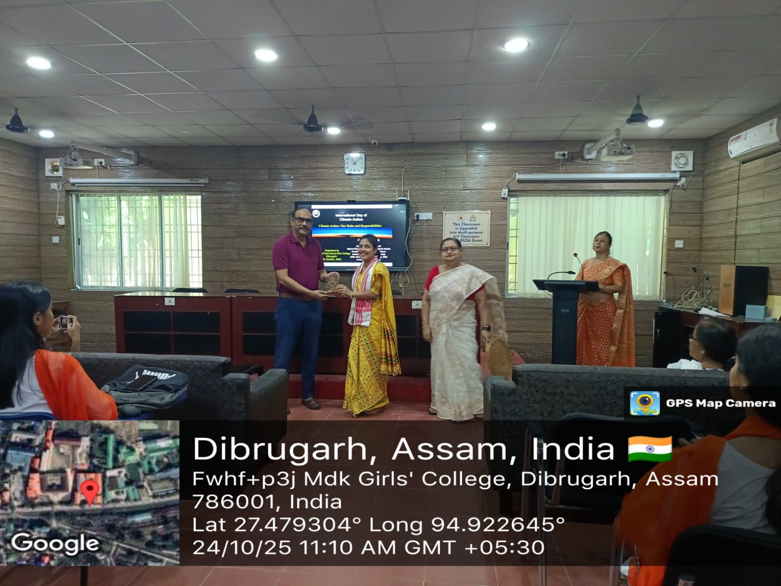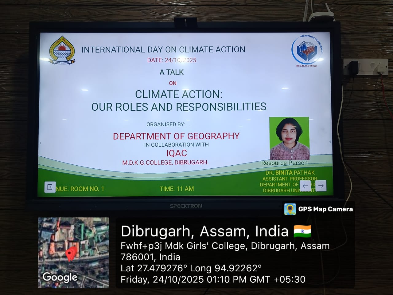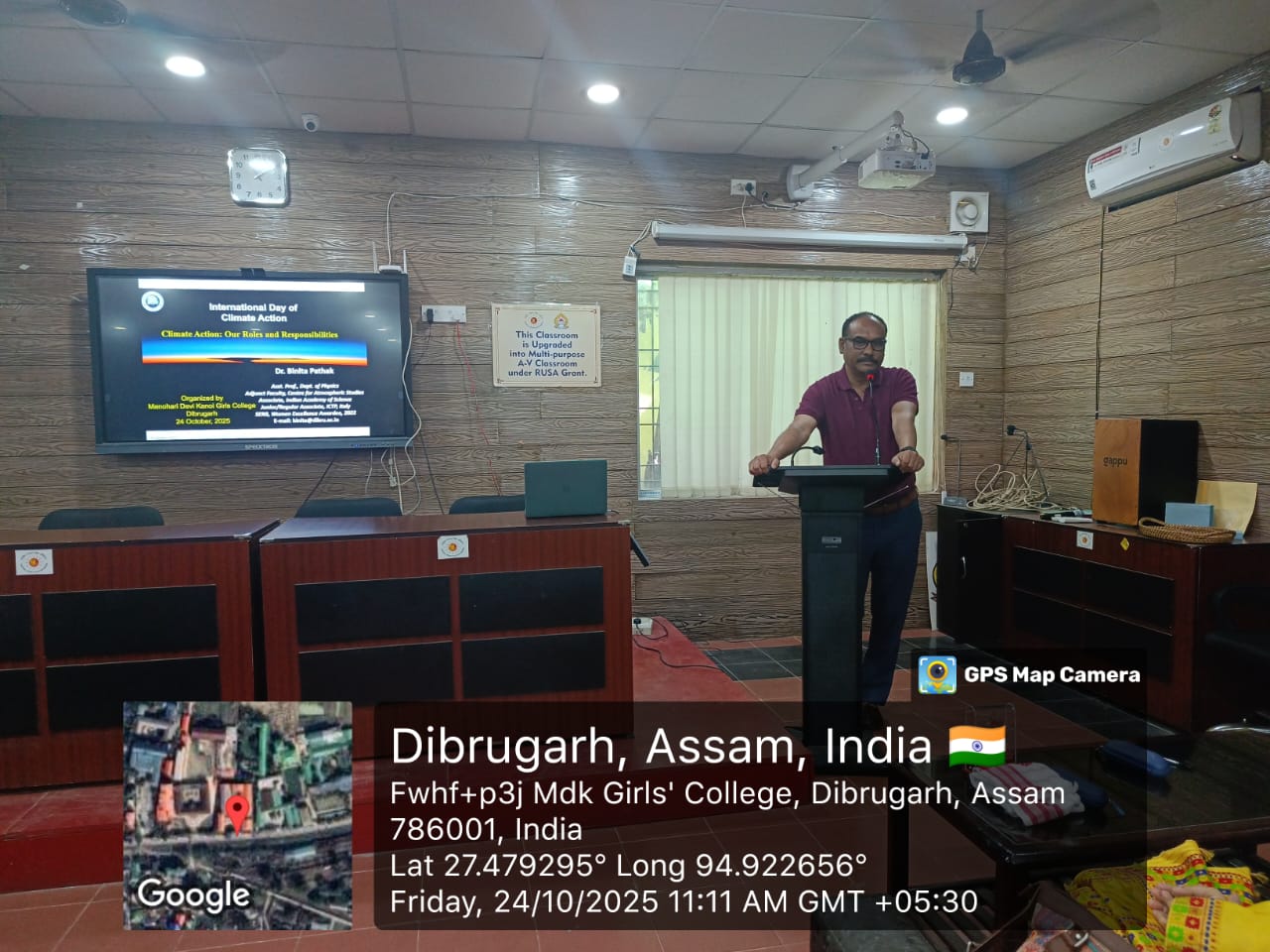 The Department of Geography and IQAC, MDKG College observed the International Day of Climate Change on 24th October 2025 by organising a talk which was delivered by Dr. Binita Pathak, Assistant Professor, Department of Physics and Adjunct Faculty of Centre of Atmospheric Studies, Dibrugarh University. The topic of the talk was ” Climate Action: Our Roles and Responsibilities”.
