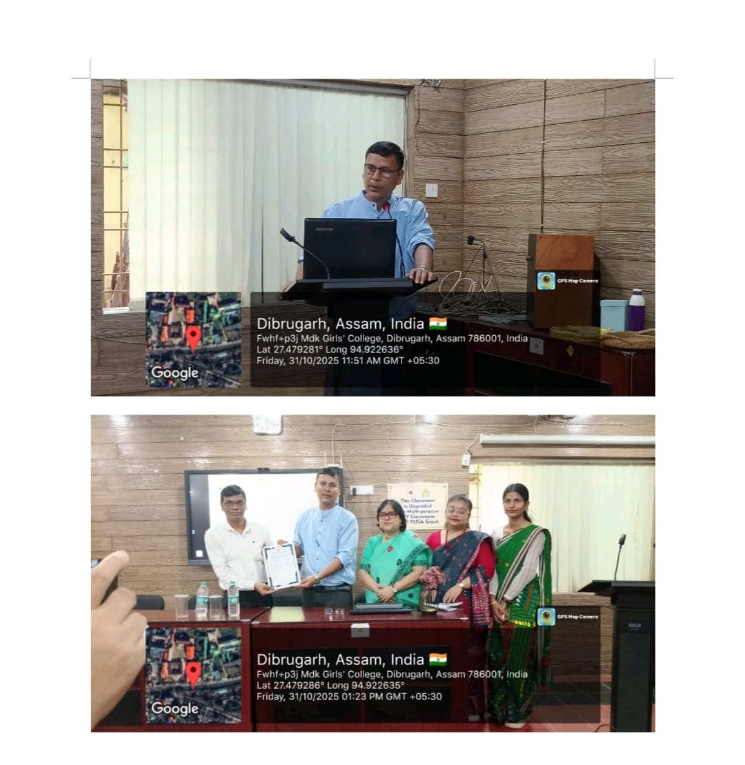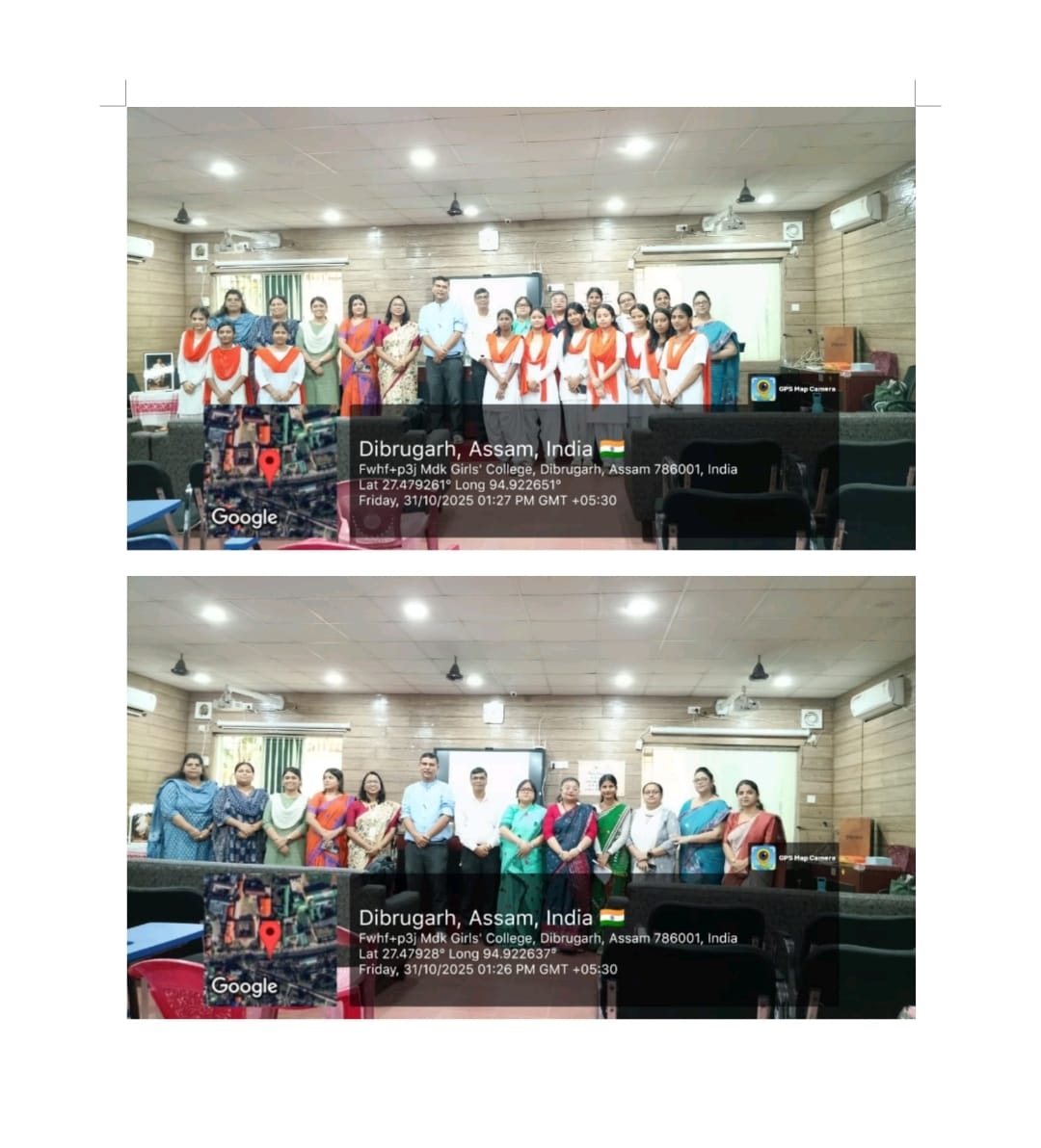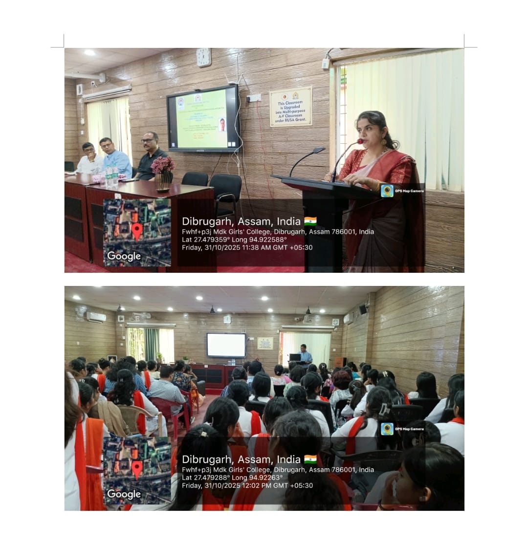 The Department of Philosophy, in collaboration with the Internal Quality Assurance Cell (IQAC) MDKG College, organized the Observation of National Unity Day 2025 to commemorate birth anniversary (150th) of Sarder Vallabhbhai Patel with great enthusiasm and patriotic spirit. An Invited lecture on ‘Role of Educational Institutions in fostering National Integration’ was organized on this occasion which was delivered by Dr.Biraj Dutta, Assistant Professor in the department of Political Science,DHSK College (Autonomous), Dibrugarh. The program was graced by the Honourable Principal, Vice Principal, faculty members, and most attractively, by the active presence of a large number of students from both the Arts and Science streams, newly elected members of MDKGirls’College Students’ Union Society (2025-26) along with members of Students’ Union Society 2024-25 making the event truly vibrant and meaningful.